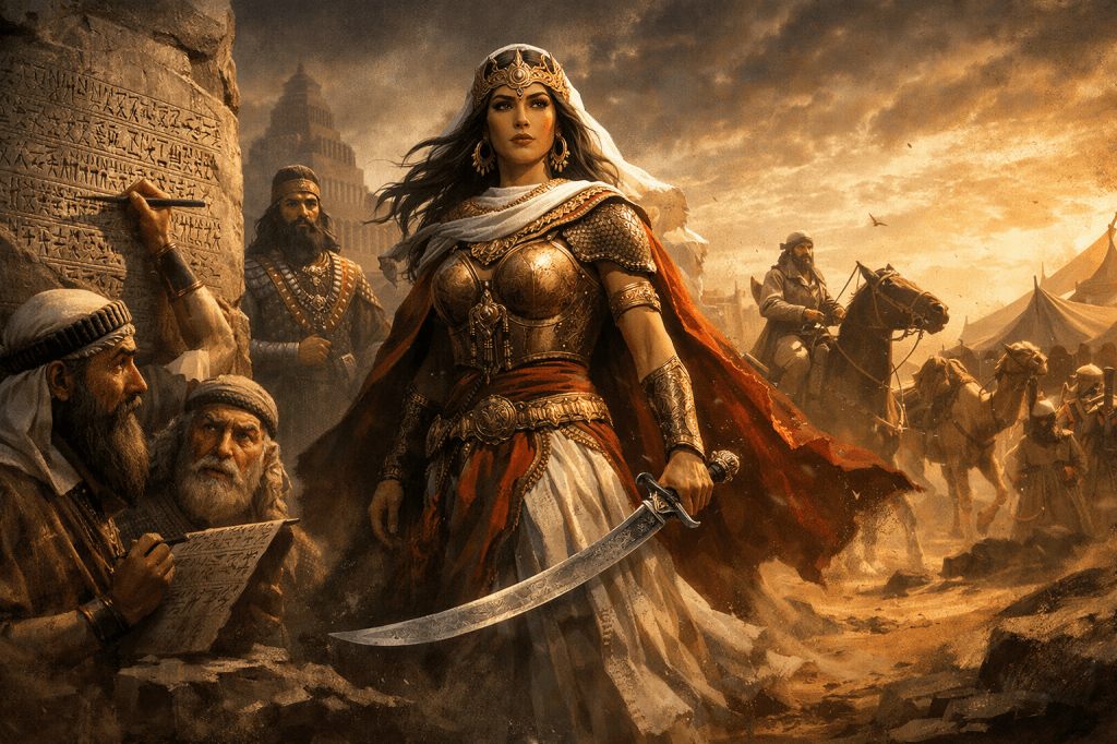 Ed ecco perché le regine guerriere arabe hanno un’aura mitica. Perché stanno sul confine perfetto tra storia e leggenda. Da una parte abbiamo le iscrizioni, dall’altra la sensazione che dietro quei nomi ci siano vite più vaste, più complesse, più teatrali di quanto il documento lasci vedere. E diciamolo: “regina guerriera delle tribù arabe” è una definizione che non ha alcun bisogno di ufficio stampa. Funziona da sola. Evoca sabbia, potere, cavalli, trattative serrate, ambasciatori nervosi, generali assiri sudati e scribi che cercano di capire come trascrivere correttamente nomi che arrivano da mondi diversi.